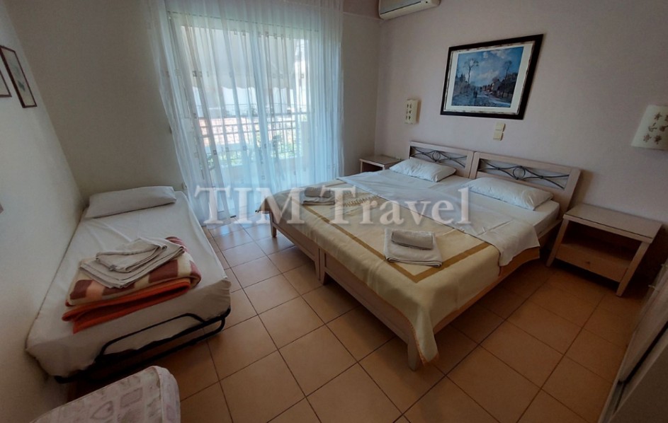 Uslovi korišćenja i osnovni podaci o smeštajnoj jedinici: Apartmani se koriste posle 15.00 časova prvog dana po programu, poslednjeg dana se napuštaju do 09.00 časova. Tokom boravka gosti sami čiste i održavaju apartman, obavezni su da ga prilikom napuštanja ostave u čistom stanju i sa kompletnim inventarom. Za minimum boravka od 10 noći, posteljina se menja na 5-7 dana. Menjaju je gosti sami tako što zaduže čistu posteljinu, a vlasnicima vrate korišćenu. Sve usluge navedene u Programu podrazumevaju standardne usluge prosečnog kvaliteta, uobičajene i specifične za određene destinacije, mesta i objekte. Od sezone 2020. godine primenjuje se zakon o zabrani konzumiranja cigareta u zatvorenom prostoru - zabrana se odnosi i na apartmane/studije. Nastalu štetu tokom boravka u apartmanu, korisnik plaća na licu mesta, vlasniku apartmana. U apartmanima/studijima postoji osnovni kuhinjski pribor i oprema, ali ne i sredstva za higijenu. Prostor za čuvanje prtljaga i odmor putnika u danima smene nije obezbeđen. Detaljni uslovi korišćenja apartmana/studija se nalaze u Opštim uslovima putovanja organizatora TIM Travel. Molimo putnike da poštuju preporučene i trenutno važeće zdravstvene protokole na izabranoj destinaciji, tokom putovanja i boravka u smeštaju. Korišćenje interneta je uz napomenu da je moguće da dolazi do prekida protoka, posebno na početku i na kraju sezone, usled lošijih vremenskih uslova, opterećenja mreže i ograničenog protoka interneta od strane grčkih operatera na šta Organizator putovanja nema uticaja i ne može snositi odgovornost. Period korišćenja Wi-Fi interneta je 01.jun – 30.septembar.