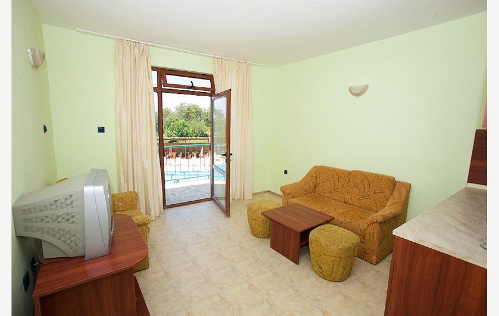 Lokacija: Nalazi se na 350m od plaže, prva linija od mora, na kraju Sunčevog Brega i početku mesta St. Vlas.
